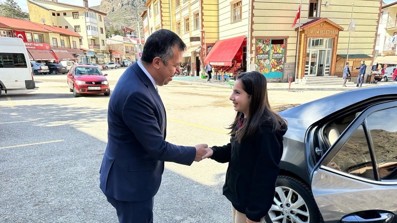 Tortum Kaymakamı Fatih Bayram, 23 Nisan Ulusal Egemenlik ve Çocuk Bayramı münasebetiyle koltuğunu Şehit Hasan Karşı Ortaokulu 5. Sınıf öğrencisi Busenur Savaş’a devretti.