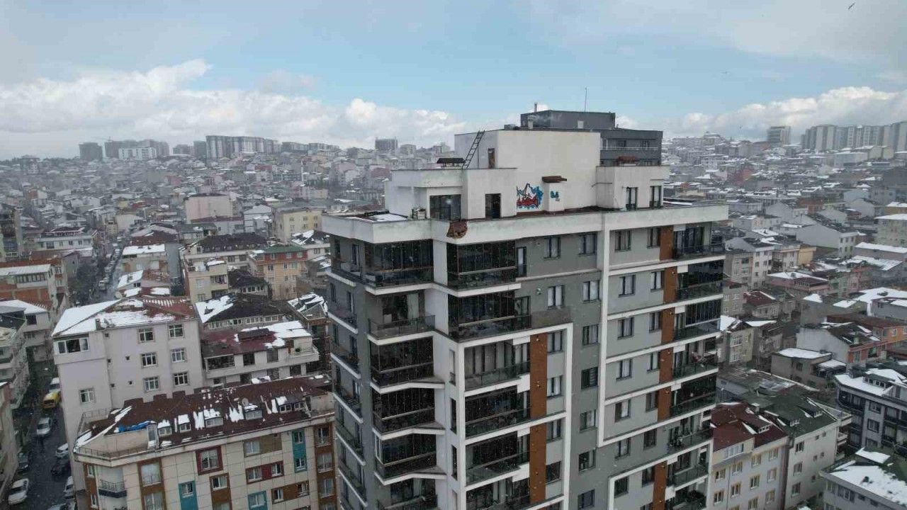 Küçükçekmece’de 13 katlı bir binanın çatısına yıldırım isabet etti. Çatıdan kopan parçalar park halindeki çok sayıda aracın üzerine düşerek zarar verirken, olayda 1 kişi yaralandı. Öte yandan, yıldırımın isabet ettiği bina ve zarar gören araçlar havadan görüntülendi.