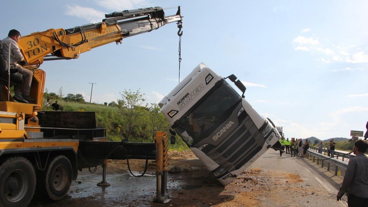 İhbar üzerine olay yerine polis, jandarma ve sağlık ekipleri sevk edildi. Ekiplerce yapılan incelemede, kazada yaralanan olmadığı belirlendi. Kaza nedeniyle İzmir-Ankara D300 karayolu, devrilen tırın kaldırılması çalışmaları süresince trafiğe kapatıldı. Uzun araç kuyruklarının oluştuğu yolda, ekiplerin yaklaşık bir saatlik çalışmasının ardından trafik akışı kontrollü şekilde yeniden sağlandı.