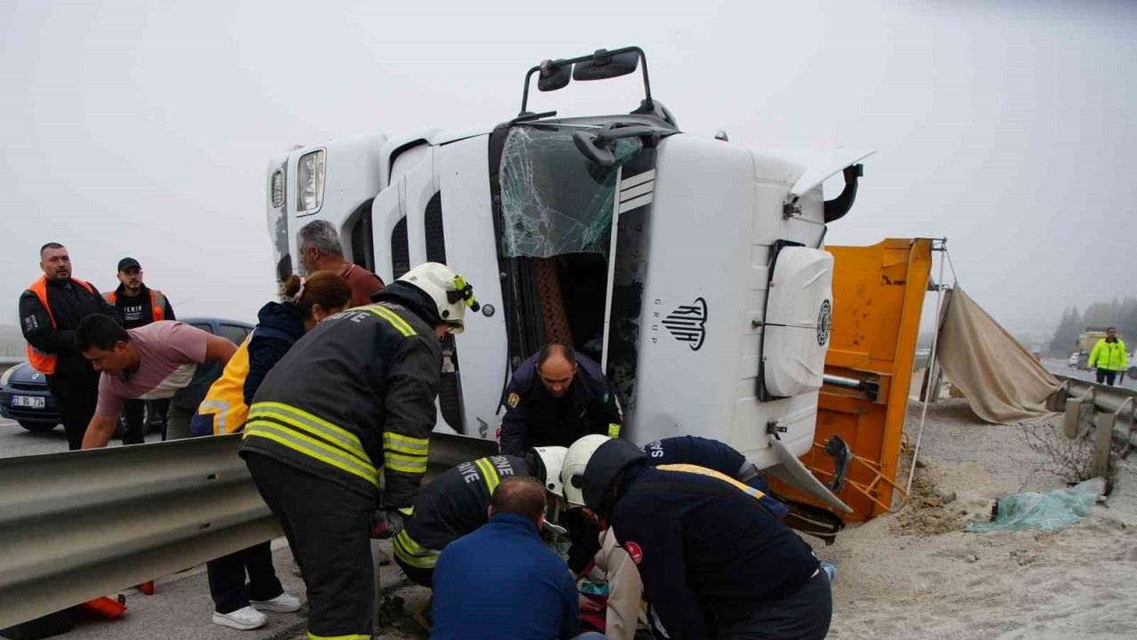 Kabin içinde sıkışan sürücü, itfaiye ekiplerinin ön camı kırarak yaptığı müdahale ile bulunduğu yerden çıkarıldı. İhbar üzerine olay yerine polis, jandarma, itfaiye ve sağlık ekipleri sevk edildi.