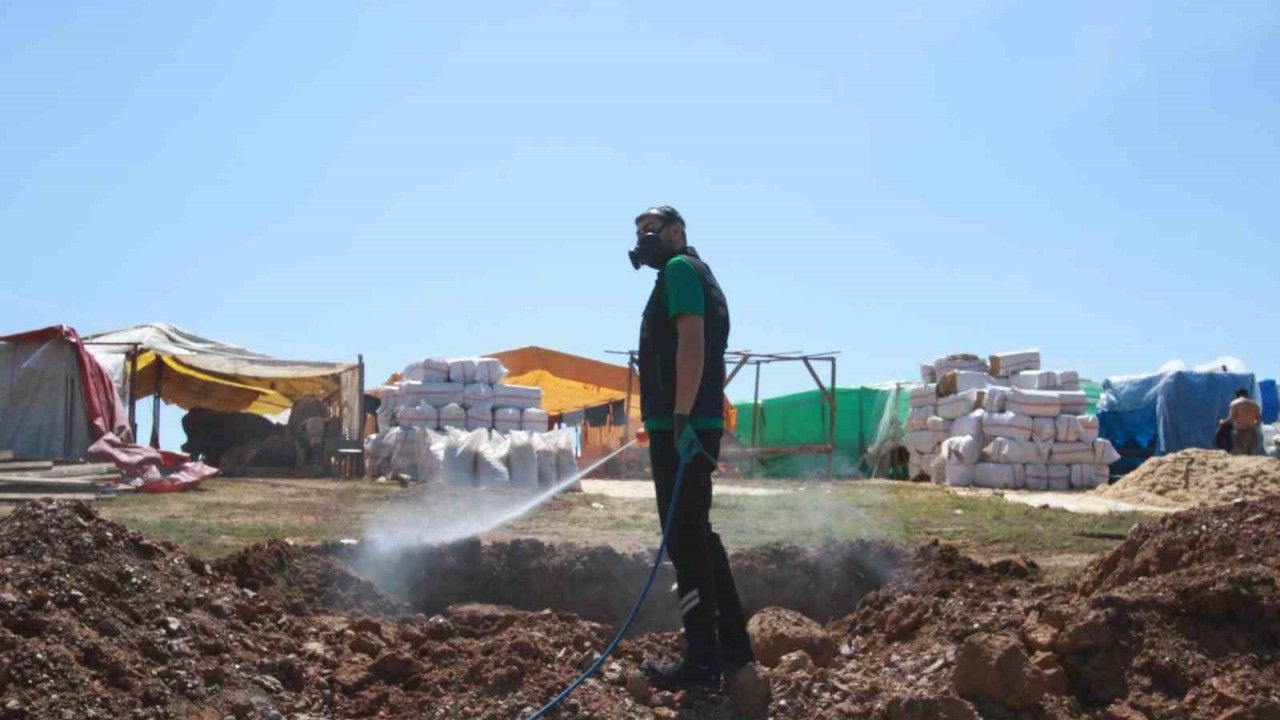 Bu alanlarda gerçekleştirilen ilaç uygulamasıyla da hayvan giriş ve çıkışlarında çevreden gelebilecek karasinek, sivrisinek larvaları, kene gibi zararlı risklerinin önüne geçiliyor. İlaçlama uygulaması, çevre ve insan sağlığına zarar vermeyen Sağlık Bakanlığı onaylı biyosidal ürünlerle yapılırken, hayvan dışkı biriktirme bölgeleri de Veteriner Hizmetleri Şube Müdürlüğü ekipleri tarafından ilaçlanıyor. Ayrıca çadır etrafları ilaçlanırken, önlerine de karasinek ve sivrisinek için tuzak çuvalları asılıyor.