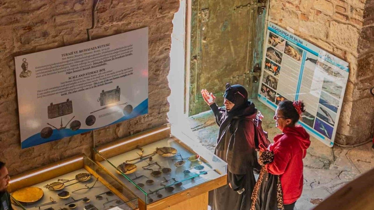 UNESCO Dünya Mirası Geçici Listesi’nde yer alan Güvercinada Kalesi’nde yer alan Deniz Ticaret Tarihi Müzesi, kruvaziyer yolcuları ile kenti günübirlik ziyaret eden yerli ve yabancı konuklar tarafından da büyük ilgi ile karşılanıyor. Kuşadası Belediyesi tarafından 2024 yılının son günlerinde Güvercinada Kalesi’nde ziyarete açılan Deniz Ticaret Tarihi Müzesi’ni, 3 buçuk ayda toplam 20 bin 858 kişi ziyaret etti. Müze, 9 günlük Ramazan bayramı tatili boyunca 207’si Kuşadası’nda ikamet eden Adalı Kart sahipleri olmak üzere toplam 6 bin 937 kişiyi ağırladı. Denizcilikle ilgili çeşitli objeler, deniz ticaretinin farklı tarihi süreçlerine ilişkin ticari eşyalar, balıkçılık aletleri ile sikke, mühür ve biletlerin sergilendiği müze, ev sahipliği yaptığı zengin eser çeşitliliğinin yanı sıra konumu ve manzarası ile de yerli, yabancı tüm ziyaretçilerini kendisine hayran bıraktı.