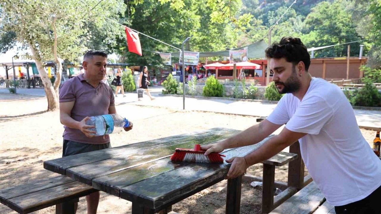 Bazı vatandaşlar kendi imkanları ile oturacakları masalarda temizlik yaparken imkanı olmayan ve bu konuda hazırlıksız gelenler çöplerin ve domuz pisliklerinin arasında günlük tatilini yapmak zorunda kalıyor.