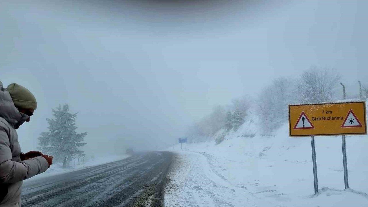 Gün içinde iki tırın kaydığı ve bir aracın kontrolden çıktığı virajda, zaman zaman trafik durma noktasına geldi. Öğle saatlerinde sıfırın altına düşen hava sıcaklığı, yolda buzlanmaya neden oldu.