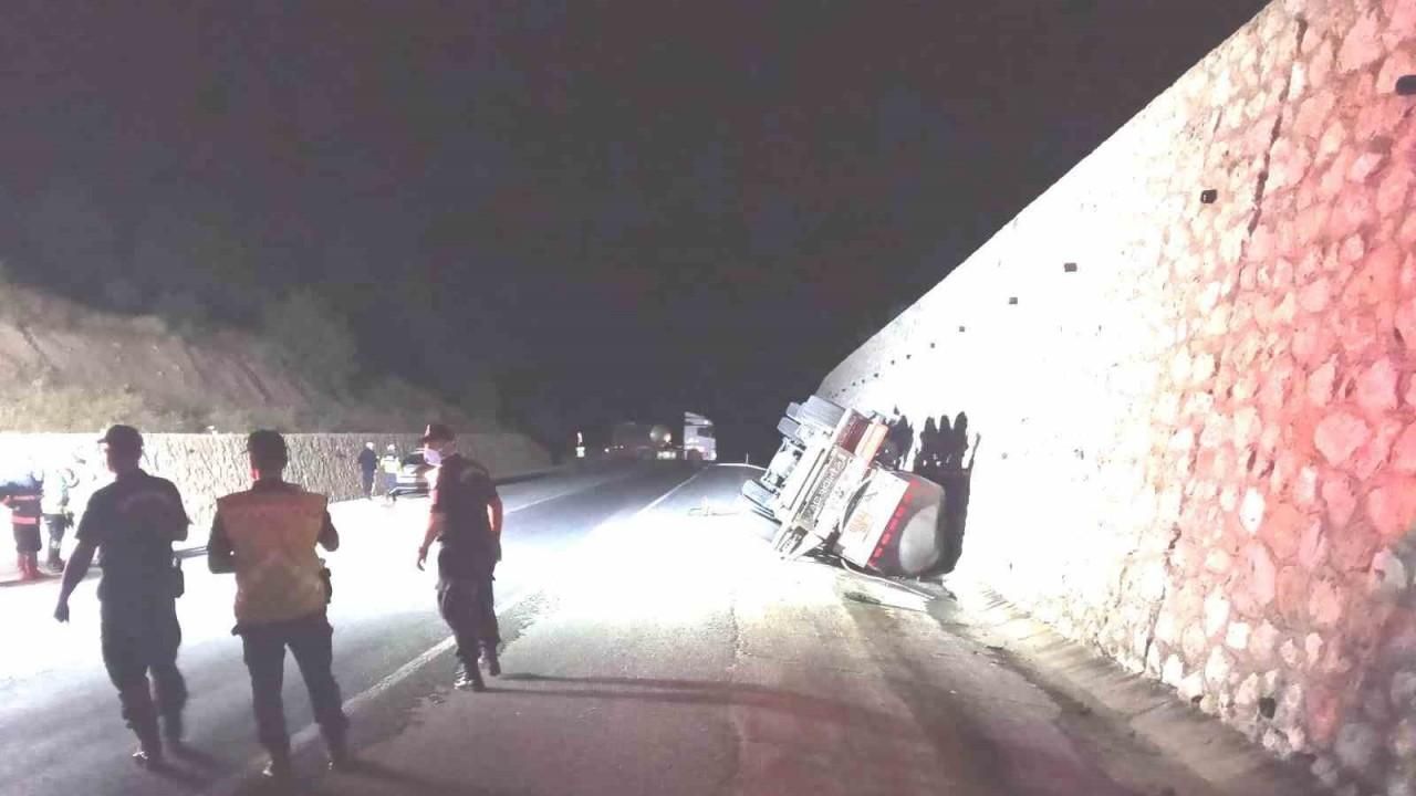 Kaza sonrası asit sızıntısı tehlikesine karşı önlem amacıyla kaza mahalline AFAD ekipleri sevk edildi.