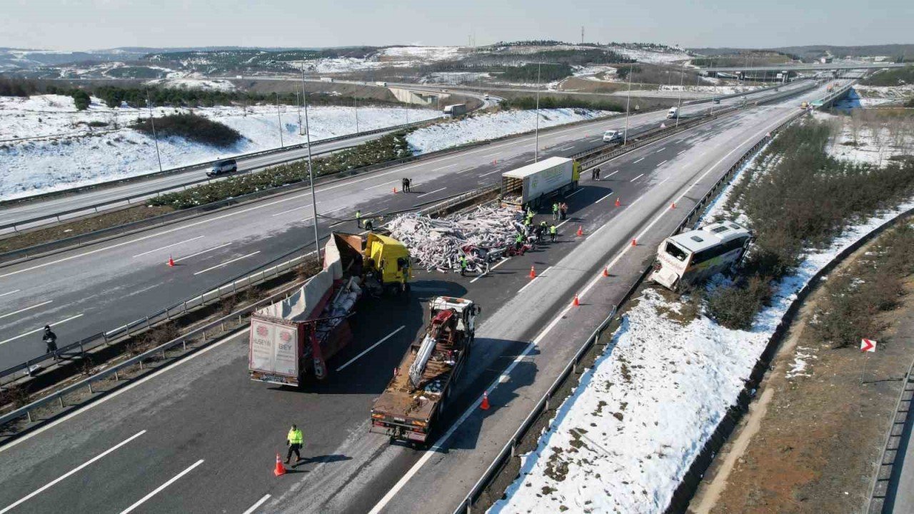 Kaza, saat 10.30 sıralarında Kuzey Marmara Otoyolu Eyüpsultan Mevkiinde meydana geldi. Edinilen bilgilere göre, Diyarbakır’dan İstanbul’a seyir halinde olan yolcu otobüsünün şoförü girmesi gereken sapağı kaçırınca ani fren yaptı. O esnada seyir haline olan Gaziantep’ten Romanya’ya halı taşıyan tır arkadan çarptı. Çarpmanın etkisiyle Star Diyarbakır otobüs firmasına ait yolcu otobüsü bariyerleri aşarak toprak yola çıktı. Tır da bariyerleri aşıp karşı istikamete geçti. Obüsündeki yolcular panik halinde indi. Tır’ın içindeki halılar ise yola saçıldı. İhbar üzerine olay yerine Jandarma, sağlık ve itfaiye ekipleri sevk edildi. Polis ekipleri güvenlik önlemi aldı. Kaza nedeniyle Edirne ve Ankara yönünde yolun bazı şeritlere kapatılırken, yola saçılan halılar başka bir tır yüklendi. Halıların yüklenmesinin ardından yol tekrar trafiğe açıldı. Kazada şans eseri yaralanan olmadı.
