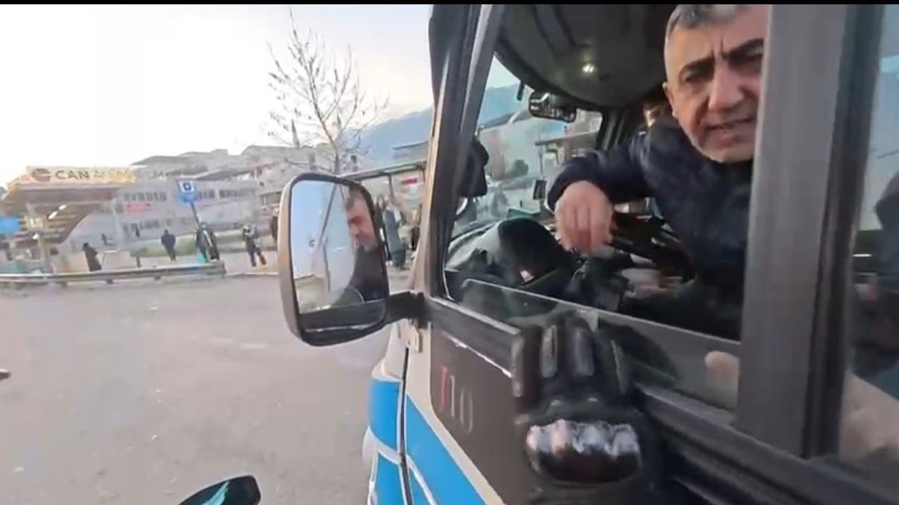 Bursa’nın Yıldırım ilçesi Arabayatağı mevkii Ankara Yolu üzerinde motosikletiyle ilerleyen Mert A., önüne minibüsü kırdığını iddia ettiği dolmuş şoförüyle sözlü tartışma yaşadı. Mert A.’nın, ’Lan’ ne yapıyorsun’ demesi üzerine deliye dönen sürücü gence tokat atmaya çalıştı. O anlar kameraya yansırken, taraflar arasında artan tansiyon sonrası, ikili araçlarından inerek sözlü tartışmaya devam etti. Deliye dönen sürücü, motosikletli gence, "Sen bir bayanın yanında nasıl ’lan’ diyorsun, kendine yakıştırıyor musun ?" diyerek tepki gösterdi. Çevredekilerin araya girmesiyle taraflar ayrılırken, Mert A.’nın sürücüden şikayetçi olacağını öne sürdü.