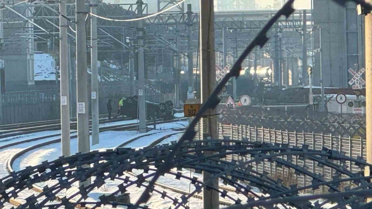 Tren yolunda yapılan kontrollü geçiş sonrasında araç yoldan kaldırıldı. Öte yandan, otomobilin kaldırıldığı anlar dron ile havadan da görüntülendi.