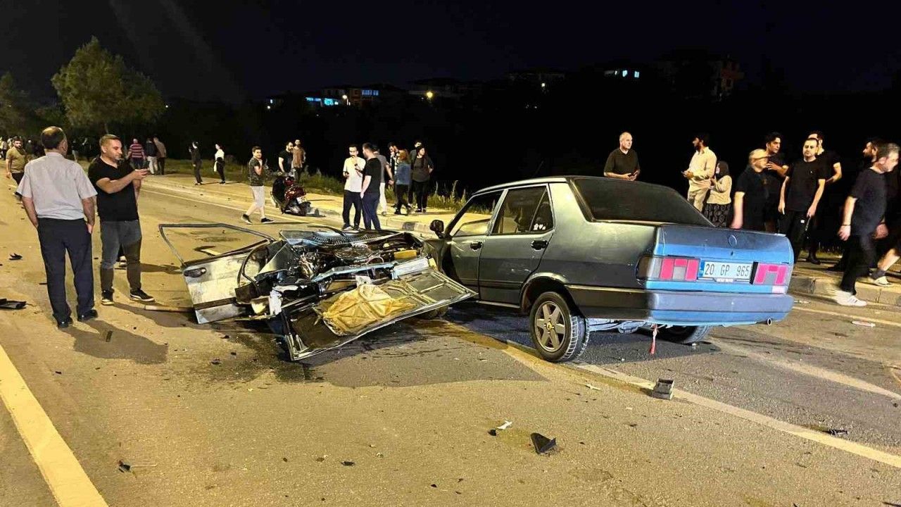 Denizli’de kontrolsüz kavşaktan U dönüşü yapmak isteyen otomobile, cadde üzerinde seyir halinde olan lüks araçla çarptı. U dönüşü yapmak isteyen Tofaş’ın ikiye bölündüğü kazada 2 sürücü yaralandı.