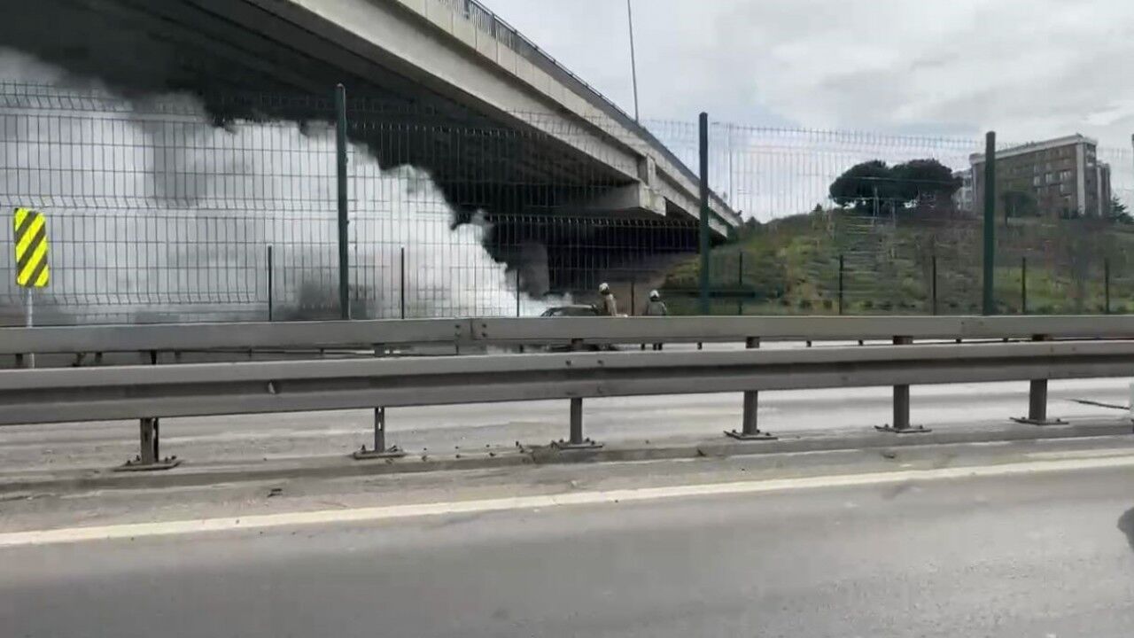 Üsküdar’da D-100 karayolunda BMW marka otomobil alevlere teslim olurken, yol bir süreliğine trafiğe kapandı.