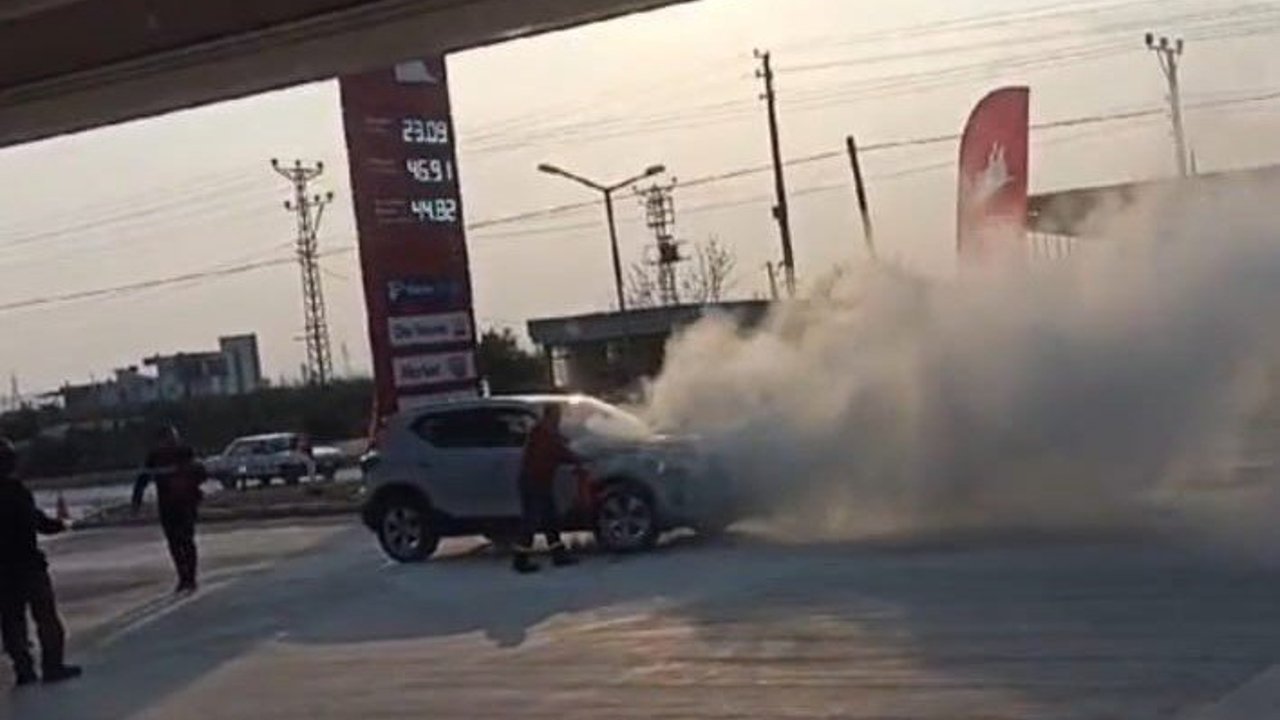 Adana’nın Kozan ilçesinde akaryakıt istasyonuna girerken dumanlar çıkmaya başlayan otomobile istasyon çalışanları yangın tüpü ile müdahale etti. Daha sonra olay yerine gelen itfaiye ekipleri, söndürme ve soğutma çalışması gerçekleştirdi.