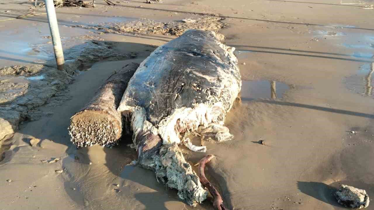 Kıyıya vuran kütleyi inceleyen ekipler, bunun yaklaşık 3,5 - 4 metre uzunluğunda dev bir yunus balığı olduğunu tespit etti. Gece saatlerinde etkili olan dev dalgaların etkisiyle karaya vurduğu tahmin edilen yunusun, uzun süre önce öldüğü ve vücudunda ciddi çürümeler meydana geldiği görüldü.