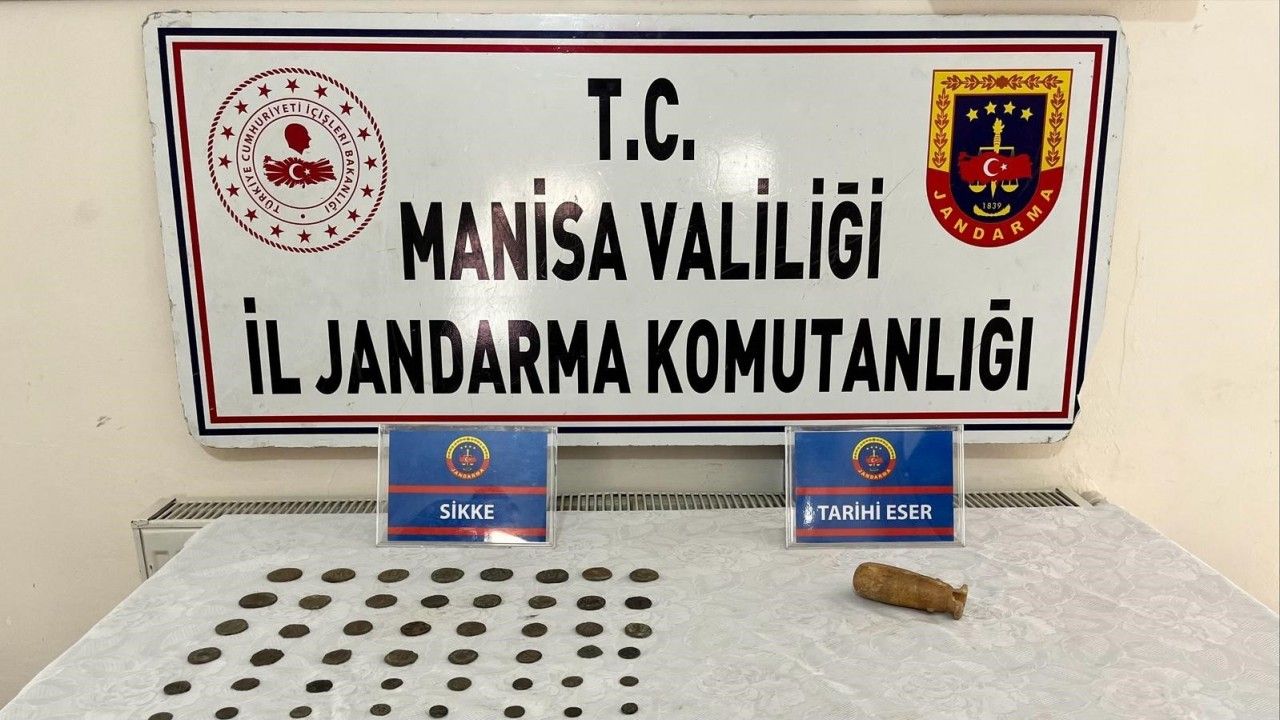 Manisa’nın Salihli ilçesinde jandarma ekipleri tarafından bir evde yapılan arama da çok sayıda tarihi eser ele geçirildi.
