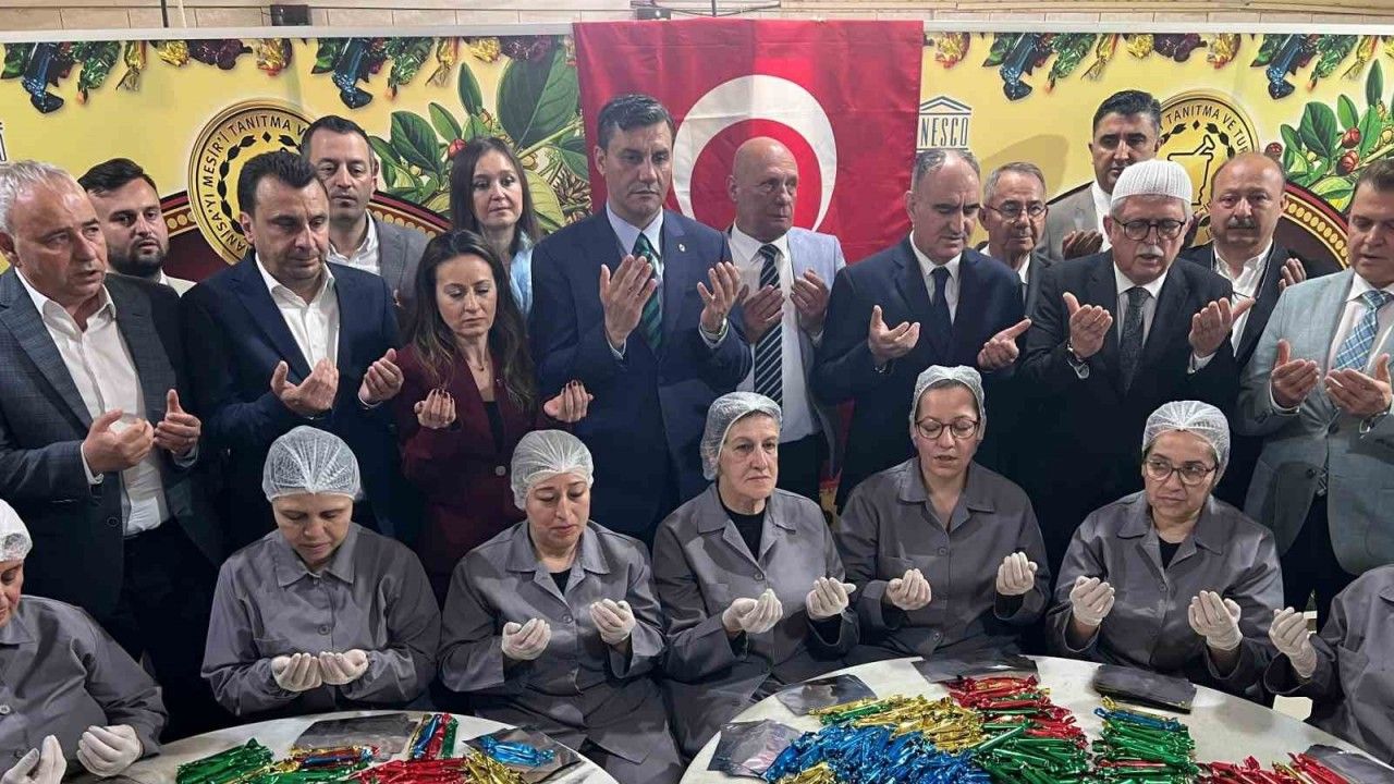 UNESCO’nun Somut Olmayan Kültürel Miras Listesinde yer alan 485. Uluslararası Manisa Mesir Macunu Festivali kapsamında Kanuni Sultan Süleyman’ın annesi Ayşe Hafsa Sultan tarafından yaptırılan tarihi Sultan Camisi’nden 27 Nisan Pazar günü saçılacak 8 ton mesir macununun duası yapıldı. Manisa’yı Mesiri Tanıtma ve Turizm Derneği’nin mesir imalathanesinde okunan duaya; Manisa Valisi Vahdettin Özkan, Manisa Büyükşehir Belediye Başkanı Ferdi Zeyrek, CHP Manisa Milletvekilleri Ahmet Vehbi Bakırlıoğlu, Bekir Başevirgen, Selma Aliye Kavaf, Manisa İl Jandarma Komutanı Tuğgeneral İlhan Şen, İl Emniyet Müdürü Fahri Aktaş, Şehzadeler Belediye Başkanı Gülşah Durbay, İl Kültür ve Turizm Müdürü İbrahim Sudak, CHP Manisa İl Başkanı İlksen Özalper, Manisa’yı Mesiri Tanıtma ve Turizm Derneği Başkanı Ufuk Tanık ve STK başkanları eşlik etti. Manisa İl Müftüsü Şükrü Kabukçu tarafından yapılan duanın ardından Vali Özkan ve protokol üyeleri, sembolik olarak basın mensuplarına mesir macunu saçtı.