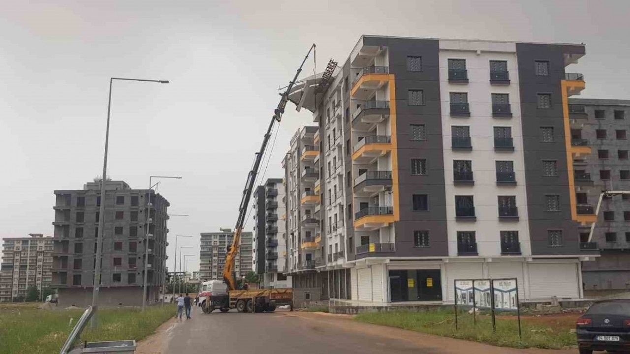 Olay, Kızıltepe ilçesinde gün boyu etkili olan kuvvetli rüzgar, bazı binalarda hasara yol açtı. Bir apartmanın çatısında bulunan çelik yapı, fırtınanın şiddetiyle yerinden koparak büyük tehlike oluşturdu. Çelik korumanın aşağı sarkmasıyla birlikte çevrede panik yaşandı. Vatandaşlar durumu hemen yetkililere bildirirken, olay yerine gelen ekipler güvenlik önlemleri aldı. Facianın eşiğinden dönüldüğü olayda herhangi bir yaralanma yaşanmadı.