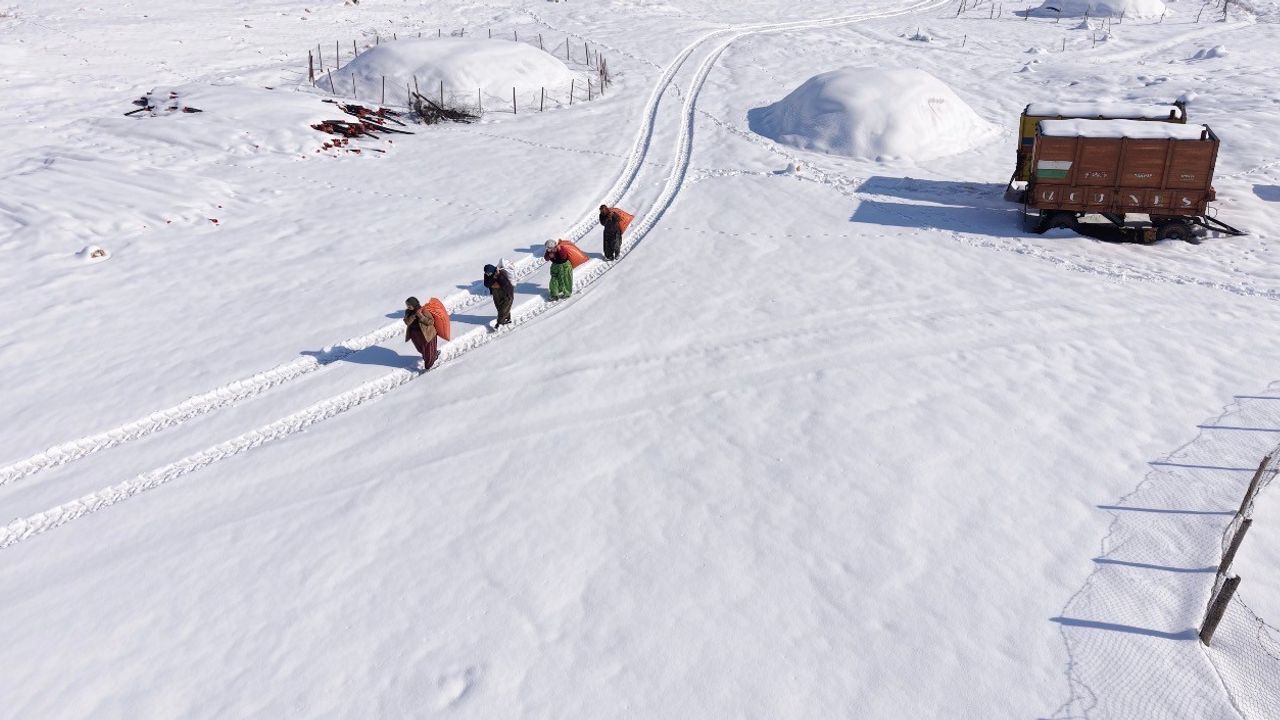 Sırtlarında yük, önlerinde kar