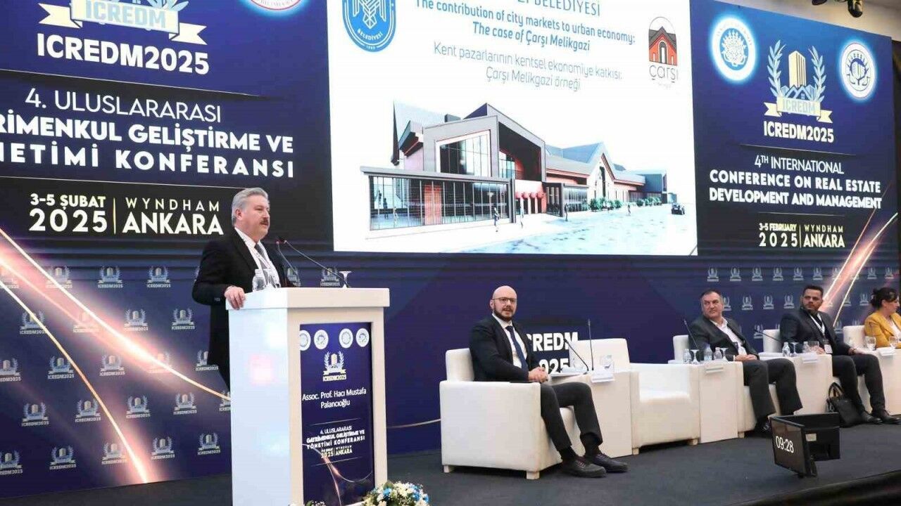 Melikgazi Belediye Başkanı Doç. Dr. Mustafa Palancıoğlu; Ankara’da düzenlenen ’ICREDM 2025 4. Uluslararası Gayrimenkul Geliştirme ve Yönetimi Konferansı’na katılarak Melikgazi’nin rekor hizmetlerinden olan Çarşı Melikgazi, Havacılık ve Uzay Bilimleri Lisesi, kentsel dönüşüm çalışmaları, okullar, aile sağlık merkezlerini anlattığı bir sunum yaptı.