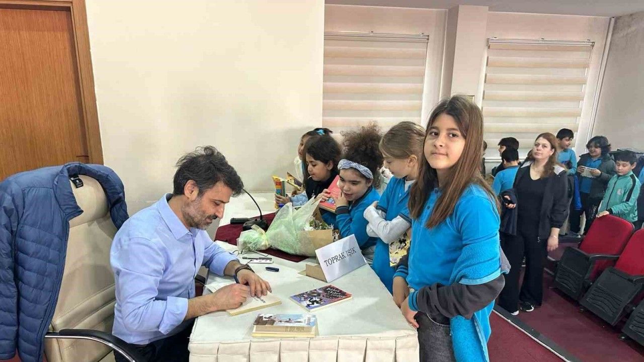 Muğla’nın Menteşe ilçesinde kitap okuma alışkanlığını yaygınlaştırmak amacıyla gerçekleştirilen etkinlikler hız kesmeden devam ediyor. Bu kapsamda, Dumlupınar İlkokulu ve Yeşilyurt İlkokulu’nun kitap kurdu öğrencileri, tanınmış yazar Toprak Işık ile bir araya geldi.