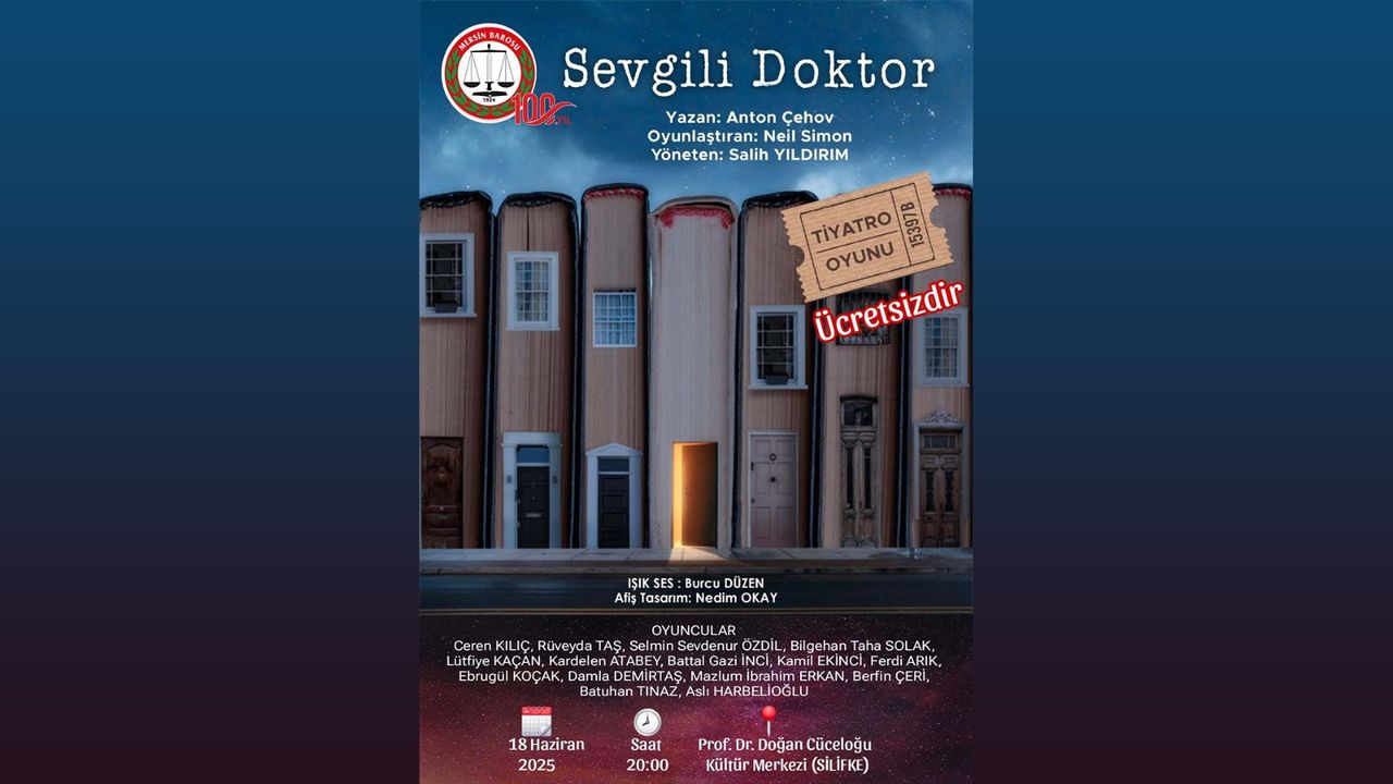 Mersin Barosu Kültür, Sanat ve Sosyal İlişkiler Komisyonu, “Sevgili Doktor” adlı bir tiyatro oyunu düzenleyecek. Ünlü Rus yazar Anton Çehov’un yazdığı ve Amerikalı oyun yazarı Neil Simon’un oyunlaştırdığı eseri, Avukat Salih Yıldırım yönetecek.