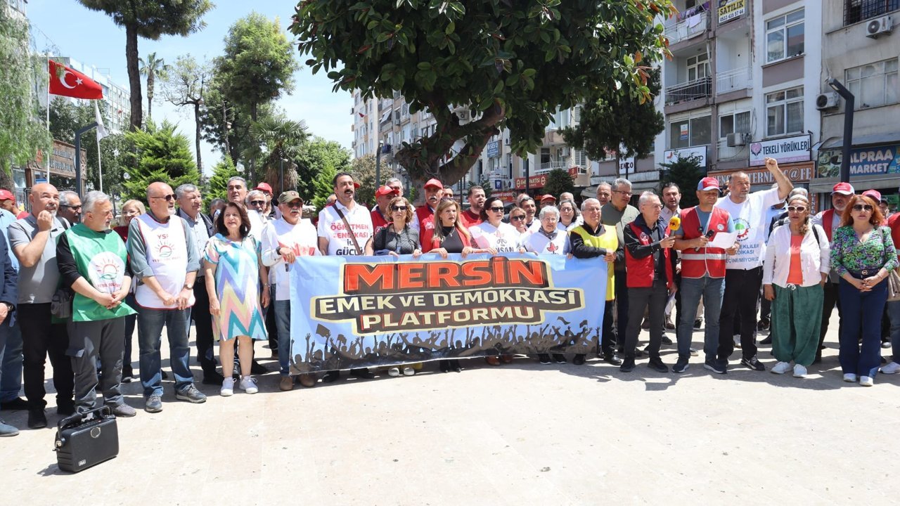 Mersin Emek ve Demokrasi Platformu, Özgür Çocuk Parkı’nda düzenlediği basın açıklamasında Mersinlilere 1 Mayıs Emek ve Dayanışma Günü’nde Cumhuriyet Meydanı’nda düzenlenecek olan kutlamalara katılım çağrısında bulundu. Basın Açıklamasında konuşan Mersin Emek ve Demokrasi Platformu Dönem Sözcüsü Tümtis Şube Başkanı Savaş Gürkan, bu ülkenin işçileri, kamu emekçileri, meslek sahipleri, emeklileri, işsizleri, yoksulları olarak, tüm dünya emekçileriyle birlikte 1 Mayıs’ta Cumhuriyet Meydanı’nda, emeğin bayramını kutlayacaklarını söyledi.