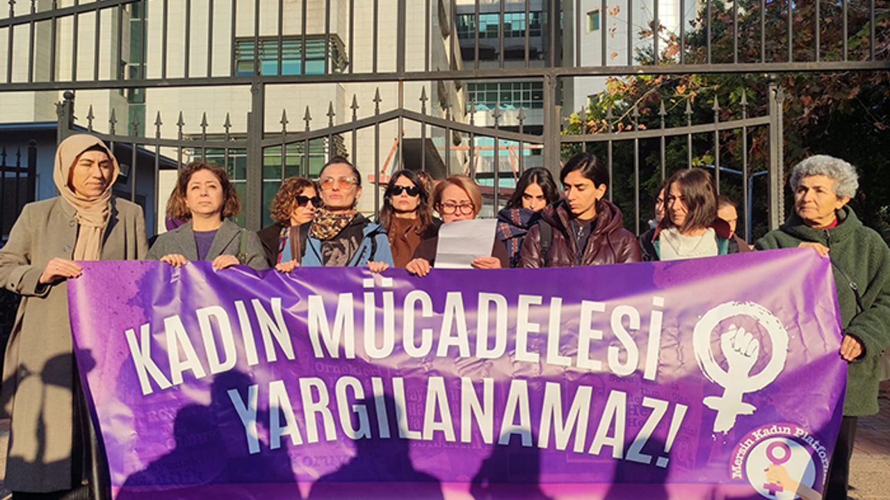 Mersin Kadın Platformu, Mimoza Kadın Derneği üyesi olan Şehriban Şeker’in, Gülistan Doku ve Rojin Kabaiş ile ilgili bir röportajda verdiği demeçten dolayı 15’inci Asliye Ceza Mahkemesi’nde yargılanmasına tepki göstermek için Mersin Adliyesi önünde basın açıklaması gerçekleştirdi. “Kadın mücadelesi yargılanamaz” yazılı pankartın açıldığı açıklamayı Mersin Kadın Platformu üyesi Zübeyde Akpınar okudu.