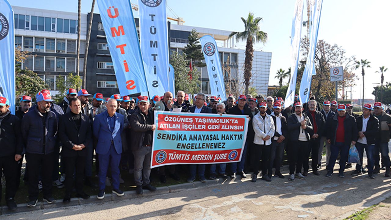Türkiye İşçi Sendikaları Konfederasyonu’na (TÜRK-İŞ) bağlı Tüm Taşıma İşçileri Sendikası (TÜMTİS) Mersin Şubesi, Mersin Uluslararası Liman İşletmeciliği (MIP) önünde toplanarak sendikalarına üye olan işçilerin işten atılmasına ilişkin bir basın açıklaması gerçekleştirdi. Açıklamaya kentte bulunan siyasi parti, sendika ve dernek temsilcileri de destek verdi. “Özgüneş Taşımacılık’tan atılan işçiler geri alınsın. Sendika Anayasal haktır engellemez” yazılı pankartın açıldığı açıklamayı, TÜMTİS Mersin Şube Başkanı Savaş Gürkan okudu.