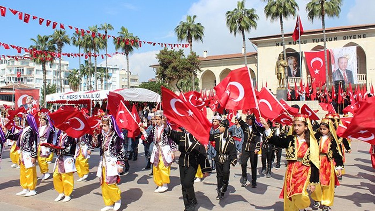 Mersin Valiliği tarafından organize edilen etkinlik, Akdeniz Bölge ve Garnizon Komutanlığı Bandosu eşliğinde saygı duruşu ve İstiklal Marşı’nın okunmasıyla başladı.
