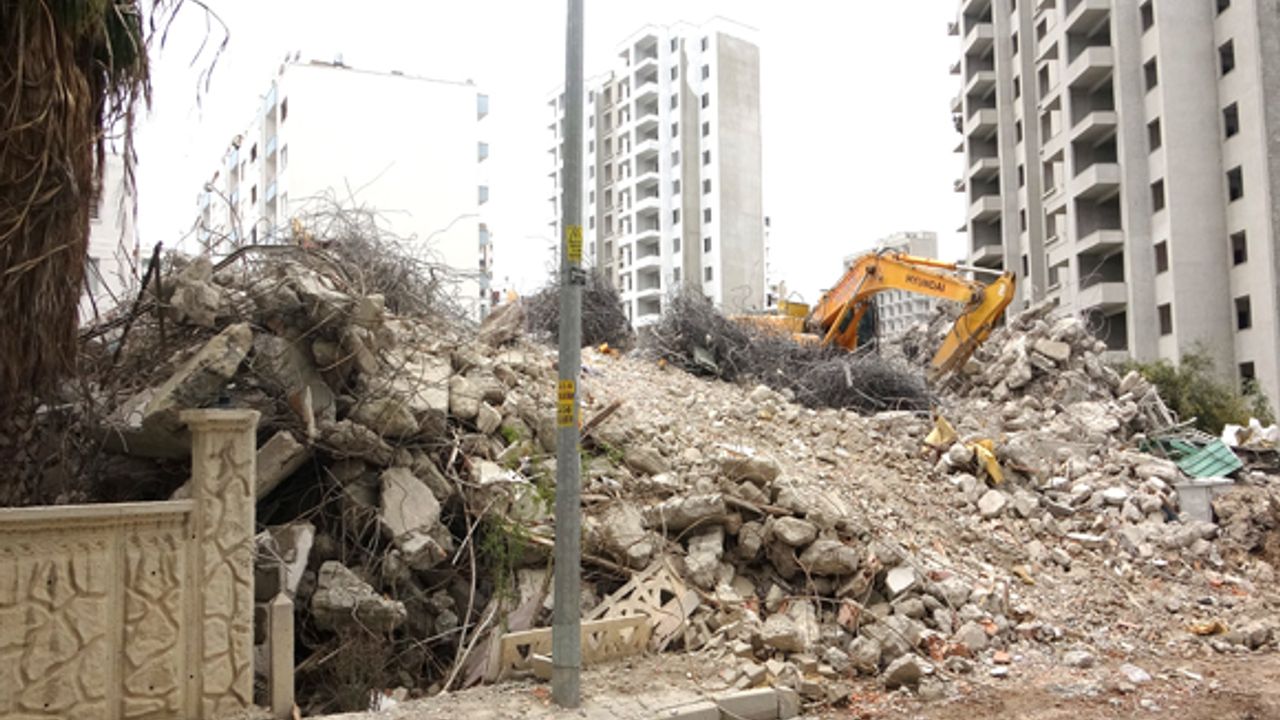 Mersin'de depremde ağır hasar alan bina yıkıldı
