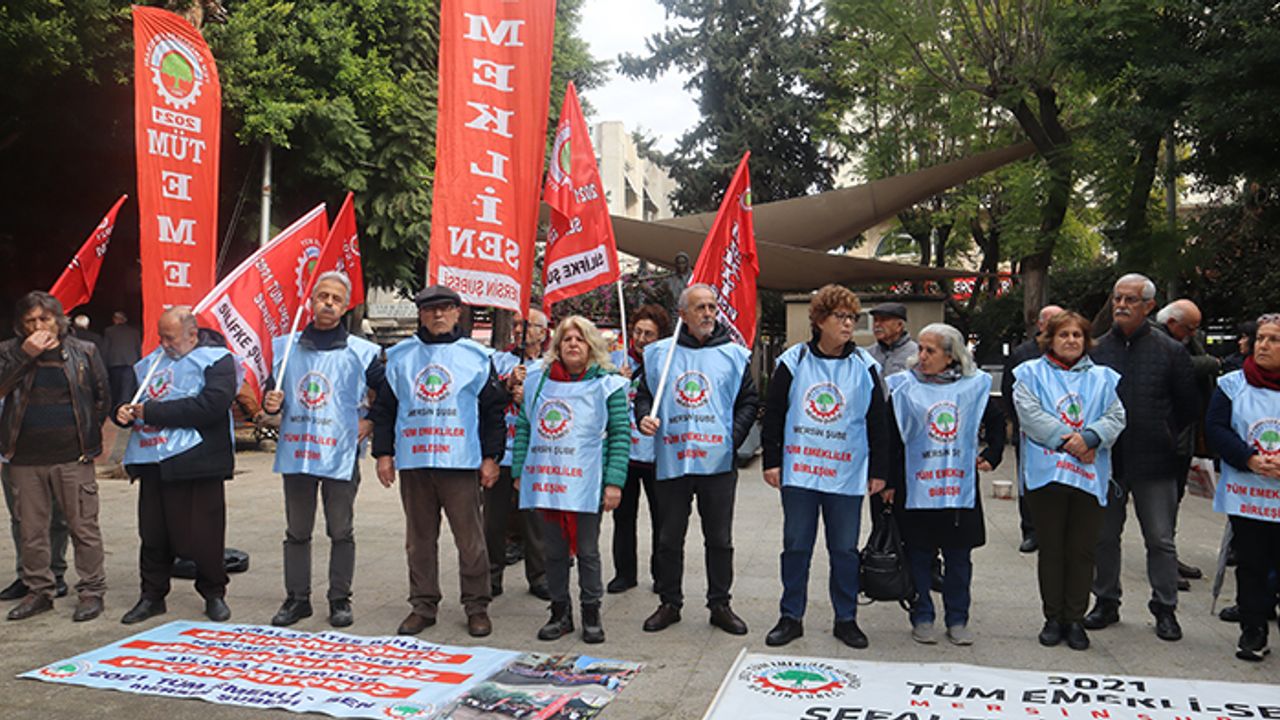 2021 Tüm Emeklilerin Sendikası (Tüm Emekli Sen) Mersin Şubesi üyeleri, hakları için bugünde sokağa indi. Akdeniz ilçesinde yer alan Yoğurt Pazarı Parkı’nda bir araya gelen emekliler, talepleri karşılanana kadar sokaklarda olacaklarını söylediler. Emekliler adına basın açıklaması yapan 2021 Tüm Emekli Sen Mersin Şube Başkanı Hüseyin Kurt, sefalete teslim olmayacaklarını ifade etti.