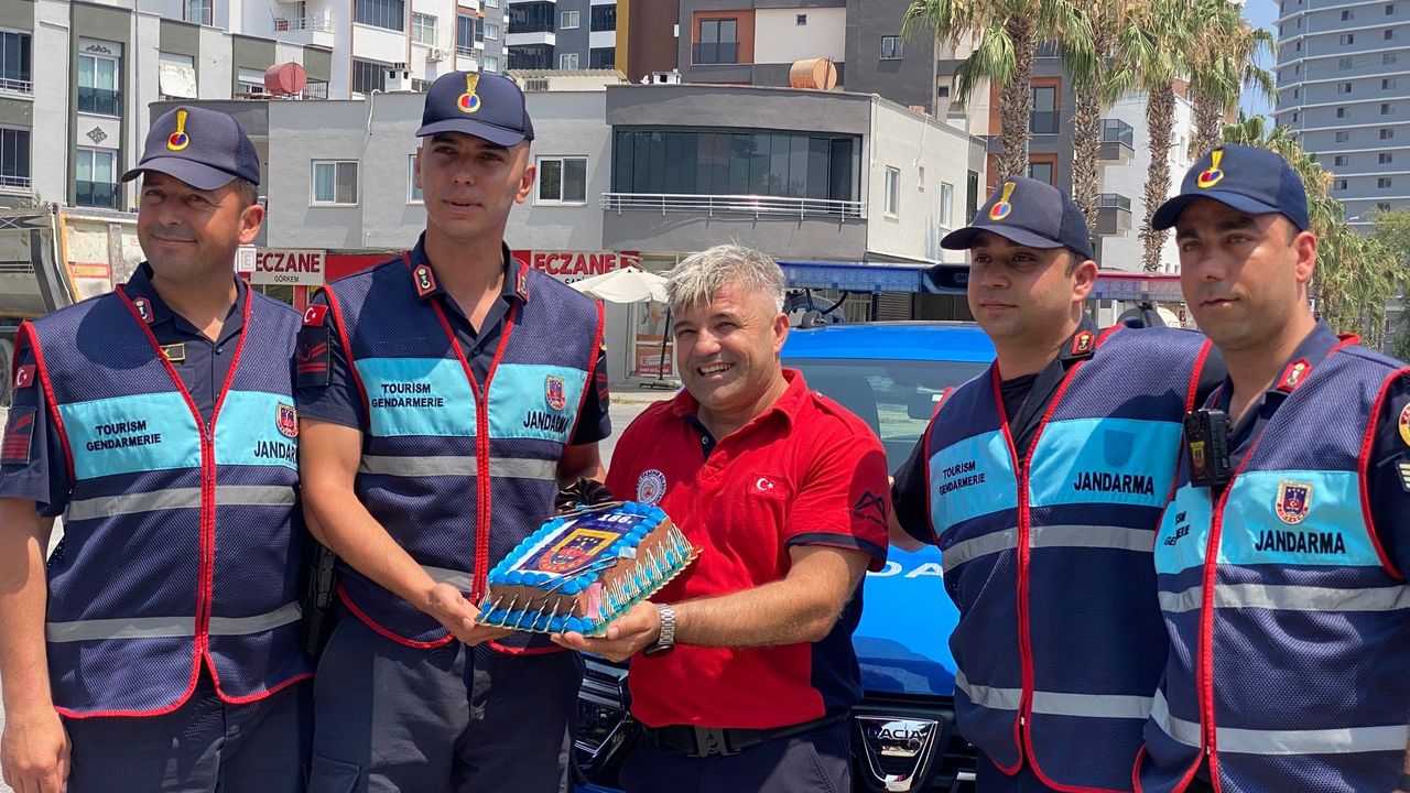 Mersin'de kavga ihbarına giden jandarmaya sürpriz kutlama