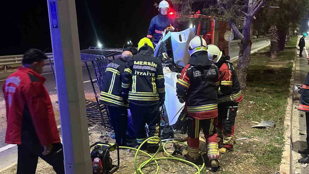 Kaza, gece yarısı Mersin-Antalya D-400 Karayolu Erdemli ilçesi Kocahasanlı Mahallesi sınırlarında meydana geldi. Alınan bilgiye göre, H.E.A. (26) idaresindeki 31 MK 312 plakalı kamyonet, sürücüsünün direksiyon hakimiyetini kaybetmesi sonucu refüje çıkıp ağaca çarparak devrildi. Kazayı görenlerin ihbarı üzerine adrese itfaiye, polis ve sağlık ekipleri sevk edildi. Araçta sıkışan sürücü itfaiye ekiplerinin çalışmasıyla çıkarılarak ambulansla ilçe devlet hastanesine kaldırıldı.