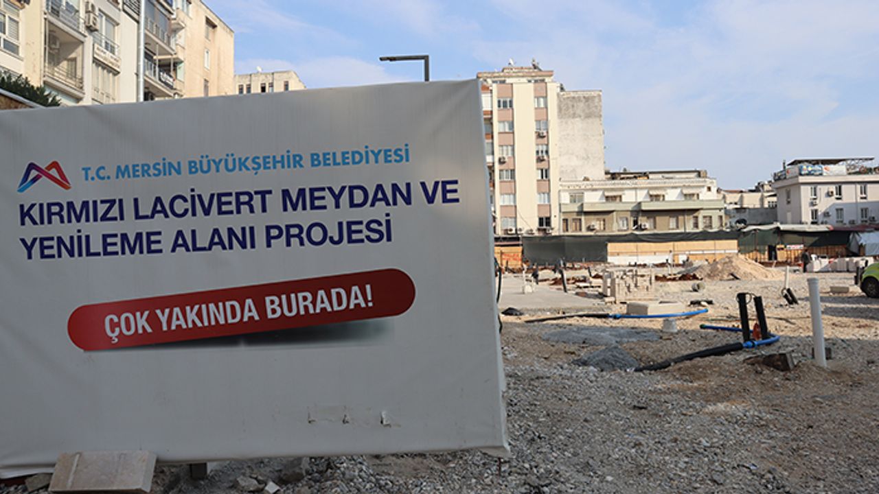 Mersin’de uzun yıllar boyunca kente hizmet eden Kırmızı Lacivert İşhanı Merkezi, vadesini doldurduğu gerekçesiyle geçtiğimiz yıl Mersin Büyükşehir Belediyesi tarafından yıkılmıştı. Belediye, Kırmızı Lacivert İşhanı’nın yerine “Kırmızı Lacivert Kent Meydanı” yapacağını duyurmuştu. Belediye, kent meydanı yapım çalışmalarına başladı. Çalışmaların bu yıl içerisinde bitmesi bekleniyor.