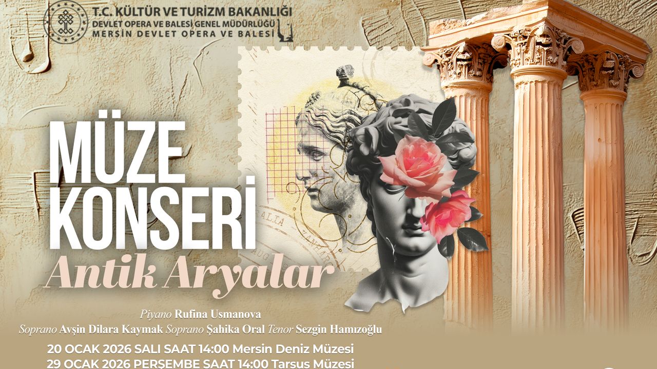 MDOB, “Antik Aryalar” başlığıyla düzenlenen müze konserleri, antik dönemden ilham alan seçkin eserleri tarihî mekânların eşsiz atmosferinde dinleyiciyle buluşturacak. Program kapsamında ilk konser, 20 Ocak 2026 Salı günü saat 14.00’te Mersin Deniz Müzesi’nde, ikinci konser ise 29 Ocak 2026 Perşembe günü saat 14.00’te Tarsus Müzesi’nde gerçekleştirilecek.