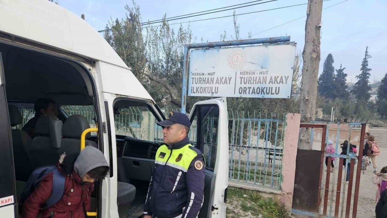 Mersin’de jandarma ekiplerince yarı yıl tatilinin sona ermesiyle birlikte okul servis araçlarından denetim gerçekleştirildi.