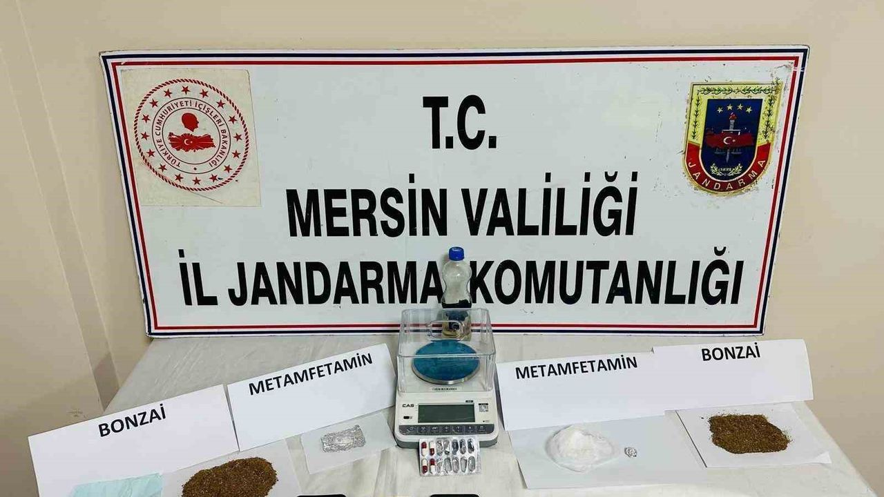 İl Jandarma Komutanlığından yapılan açıklamaya göre, Adana’dan Mersin’e araçla uyuşturucu getirileceği bilgisine ulaşan ekipler, plakası tespit edilen 2 aracı takibe aldı. Ekipler, araçları otoyol Mersin girişinde durdurarak arama yaptı. Narkotik köpeği vasıtasıyla yapılan aramalarda, 277 gram bonzai, 224 gram metamfetamin, 4 sentetik hap, 3 cep telefonu, 1 hassas terazi ve 1 adet uyuşturucu kullanma aparatı ele geçirildi.