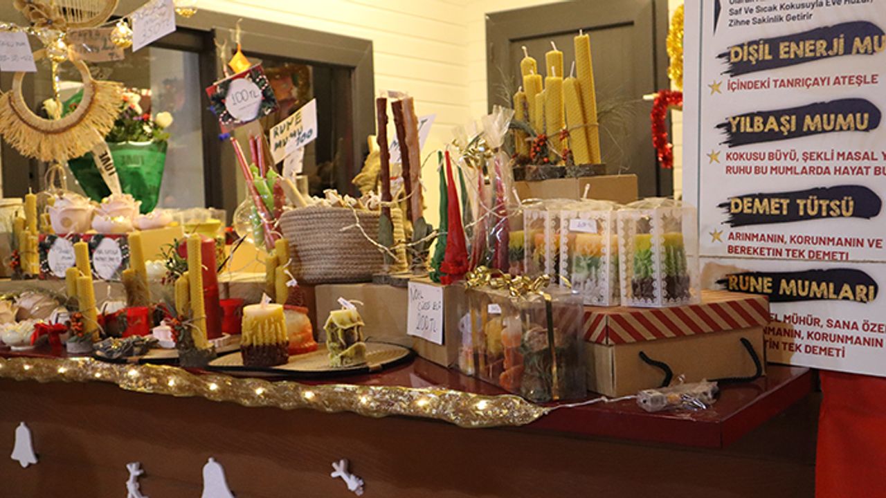Pazarda birçok farklı sektörde açılan stantlar yer alıyor. Yılbaşına özel el yapımı mum satışı yapan bir stant, Mersinliler tarafından büyük ilgi çekiyor. Stantta birçok farklı renkte ve şekilde mumlar yer alıyor. Stant görevlisi, mumların her birinin farklı anlamlar içerdiğini ifade etti. Mumlardan bazılarının isimleri şöyle: