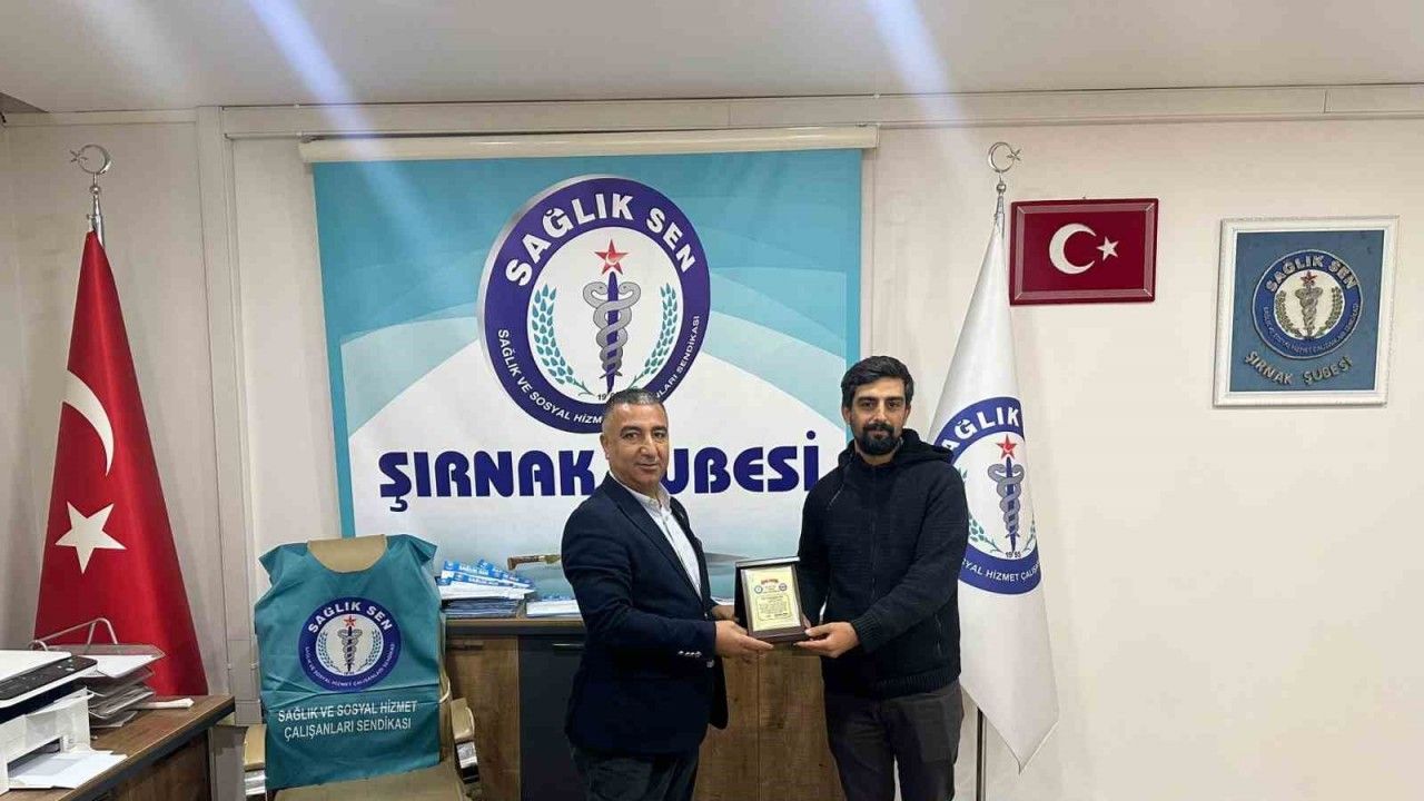 Şırnak Devlet Hastanesinde ameliyathane teknikeri olarak görev yapan sağlık çalışanı Halil İbrahim Sülü, tayin tebligatının yayımlanmasının ardından görev yaptığı sağlık tesislerinde mesai arkadaşlarıyla veda ziyaretlerinde bulundu. Bu kapsamda, uzun yıllardır üyesi ve işyeri temsilcisi olarak görev yaptığı Sağlık-Sen Şırnak Şubesini ziyaret eden Sülü, şube yöneticileriyle bir araya gelerek sendikal çalışmalar üzerine değerlendirmelerde bulundu. Yaklaşık 7 yıldır Şırnak’ta sağlık hizmeti sunan ve bu süre zarfında çalışan haklarının savunulması noktasında aktif rol üstlenen Halil İbrahim Sülü’ye, Sağlık-Sen Şırnak Şube Başkanı Sabğatullah Anmal tarafından, ilçe ve işyeri temsilcilerinin katılımıyla teşekkür plaketi takdim edildi.