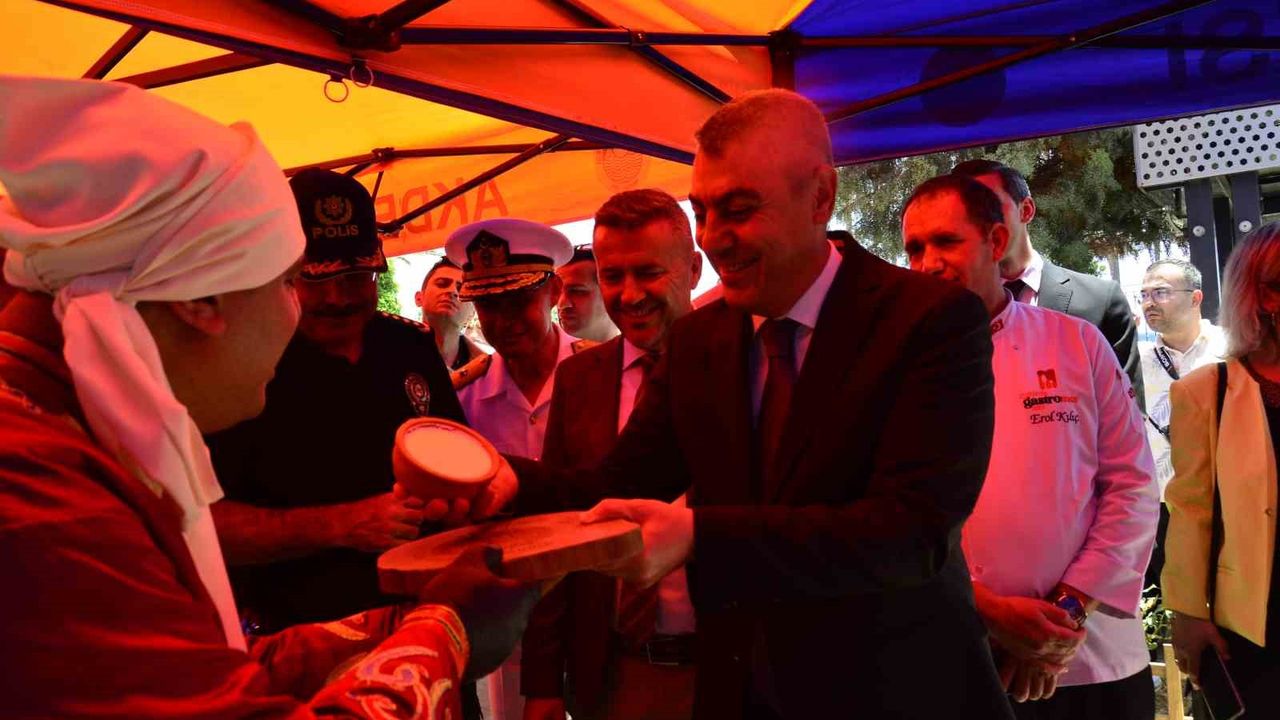 Cumhurbaşkanı Recep Tayyip Erdoğan’ın eşi Emine Erdoğan’ın öncülüğünde kutlanan ’Türk Mutfağı Haftası’ kapsamında Mersin Valiliği, İl Kültür ve Turizm Müdürlüğü ile Mersin Gastronomi Derneğince Mersin Arkeoloji Müzesi bahçesinde etkinlik düzenlendi. Etkinlik kapsamında kurulan stantlarda aralarında kentin tescilli lezzetleri fındık lahmacunu, çilek, yoğurt ve humusun da yer aldığı yöresel lezzetler katılımcılara ikram edildi. Etkinliğe katılan Vali Atilla Toros, beraberindeki il protokolü ile stantları gezdi, Mersin Gastronomi Derneği Başkanı Erol Kılıç’tan bilgi aldı. Bir stantta tescilli ürün cezeryenin kesimini yaparak katılımcılara ikram eden Vali Toros, stantları tek tek gezerek farklı lezzetlerle ilgili deneyim gerçekleştirdi. Silifke yöresine ait özel mayalanmış yoğurt kabını ters çevirmesine rağmen dökülmeyen yoğurt hakkında da bilgi alan Vali Toros, çeşitli ürünlerin yapımında katılımcılara eşlik etti. Programda konuşan İl Kültür ve Turizm Müdürü Hakan Doğanay, Mersin Valiliği, Büyükşehir Belediyesi ile Mersin Ticaret ve Sanayi Odası’nın katıklarıyla 24 coğrafi ürünün sergilendiğini kaydetti.