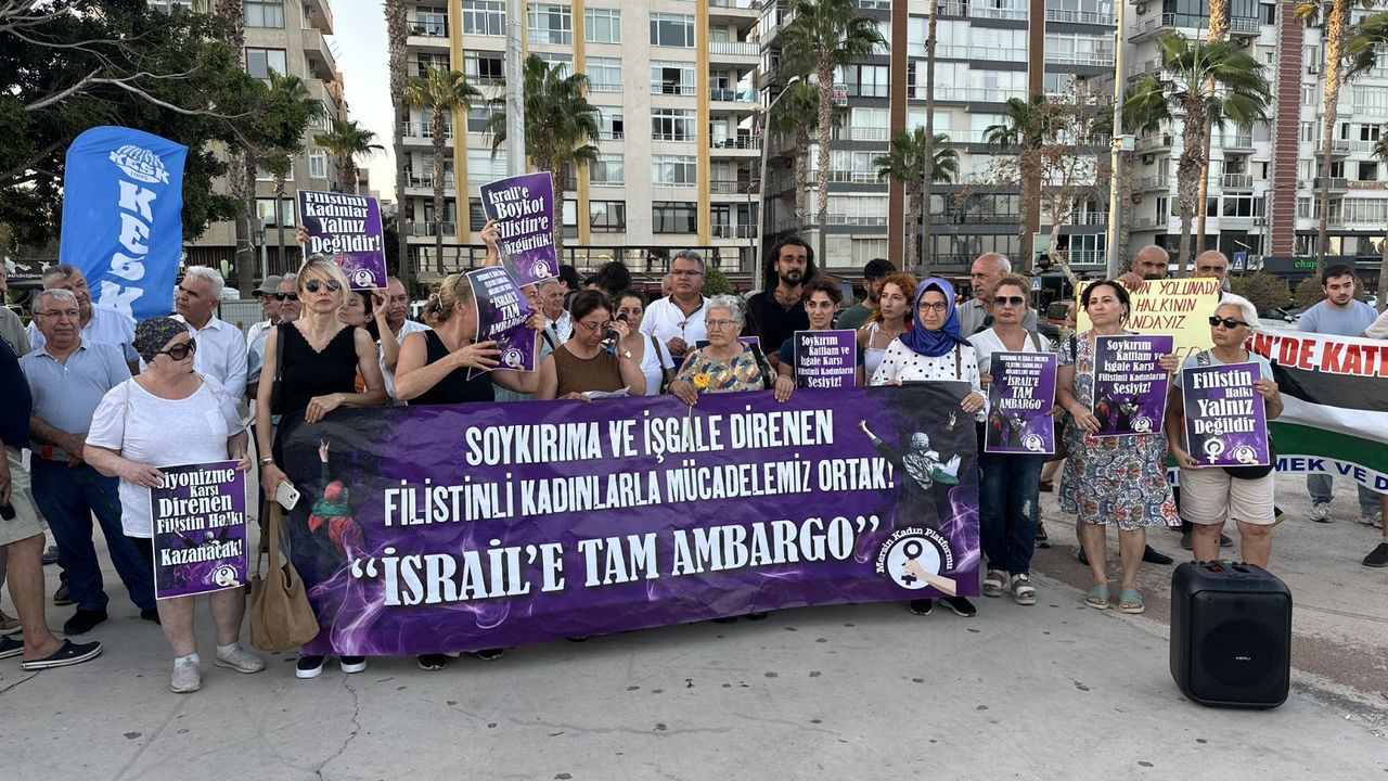 İsrail’e ambargo uygulanmasını talep eden kadınlar, tüm Türkiye’yi Filistinli kadınların yanında olmaya ve İsrail’e karşı ortak mücadele etmeye çağırdı.