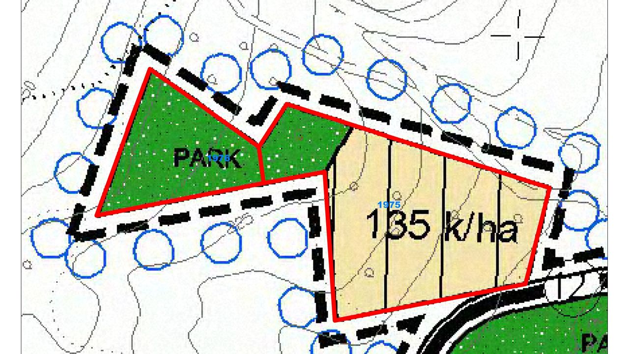 Bu planlarda; 1975 parsel ‘E: 0.60 yoğunluklu, Yençok: 4 kat’ yapılaşma koşullu ‘Konut Alanı ve Park Alanı’ olarak, 1976 parsel ise sadece ‘Park Alanı’ olarak planlanmıştır.