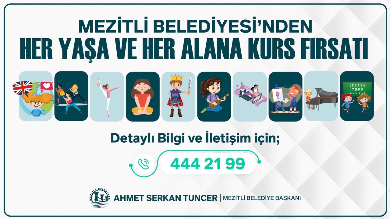 Eğitim alanında ise ilkokul ve ortaokul öğrencilerine yönelik İngilizce, matematik, fen bilimleri, satranç, zekâ oyunları gibi kurslarla çocukların akademik başarılarına destek olunuyor. Mezitli Atölyelerde de dikiş, nakış başta olmak üzere ücretsiz pek çok kurs imkânı sağlanıyor. Kurslara kayıt yaptırmak isteyen vatandaşlar, 444 21 99 numaralı Mezitli Belediyesi Çözüm Merkezi’ni arayarak detaylı bilgi alabiliyor.