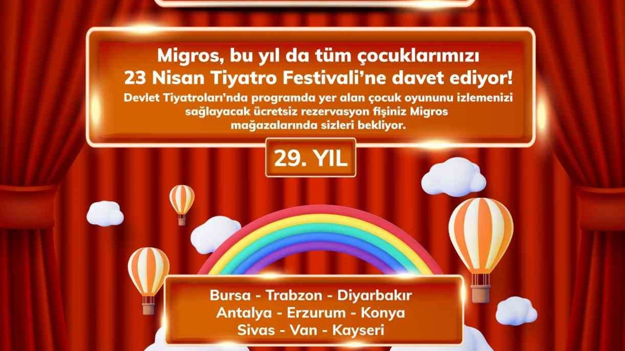 Devlet Tiyatroları iş birliğiyle 23 ve 27 Nisan tarihlerinde gerçekleştirilecek olan ‘Migros 23 Nisan Çocuk Tiyatrosu’, bu yıl 29’uncu kez çocukları tiyatronun büyülü dünyası ile buluşturacak. Festival kapsamında 9 ilde oyunların perdeleri binlerce çocuk için açılacak.