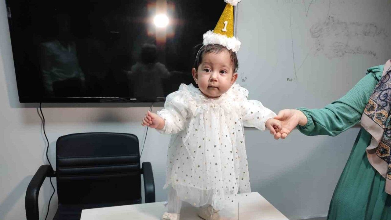 Adana’da yemek borusu yokluğuyla dünyaya gelen ve 6 ay boyunca hastanede kaldıktan sonra ameliyat ile yemek borusuna kavuşan minik Asel, birinci yaş gününü hastanede kutladı.