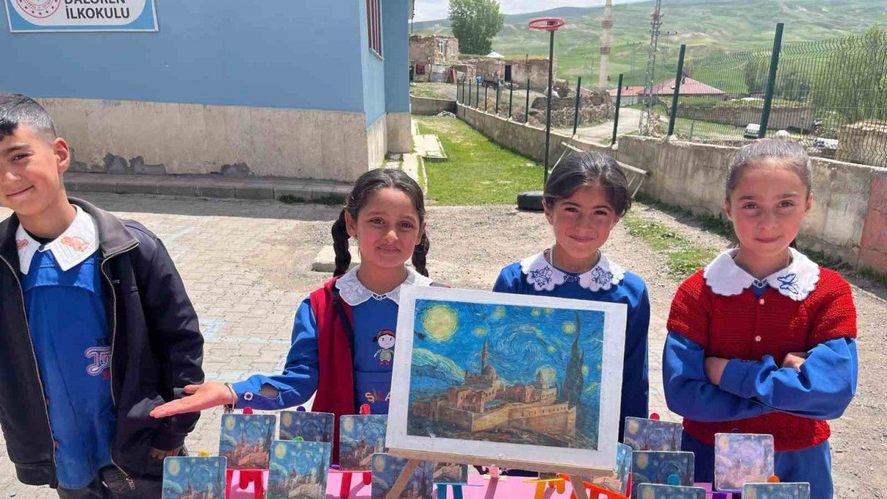 Ağrı’nın Diyadin ilçesine bağlı Yukarıdalören İlkokulu’nda düzenlenen sanat sergisinde öğrenciler, geleneksel Türk sanatlarını kendi bakış açılarıyla yorumladı.