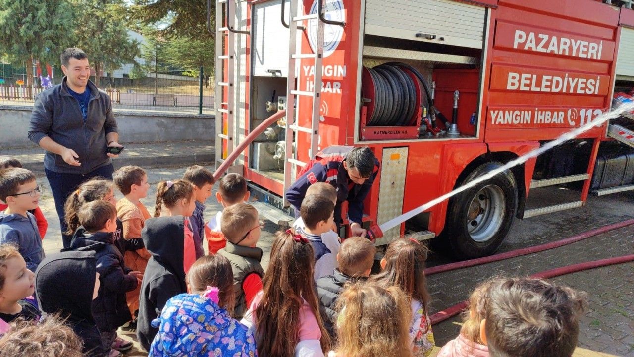 Küçük öğrencilerin yoğun ilgi gösterdiği etkinlik, hem öğretici hem de keyifli anlara sahne oldu. Çocukların yüzlerindeki mutluluk dikkat çekerken, bazı öğrenciler "Büyüyünce itfaiyeci olacağım" diyerek hayallerini paylaştı.