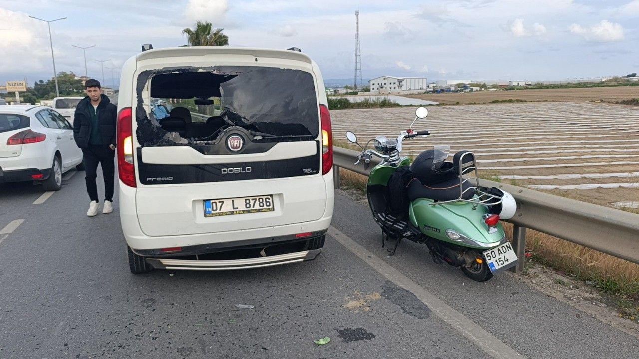 Antalya’nın Manavgat ilçesinde motosikletin hafif ticari araca arkadan çarptığı kazada, çarpmanın etkisiyle aracın arka camından içeri giren motosiklet sürücüsü, başındaki kask sayesinde ölümden döndü.