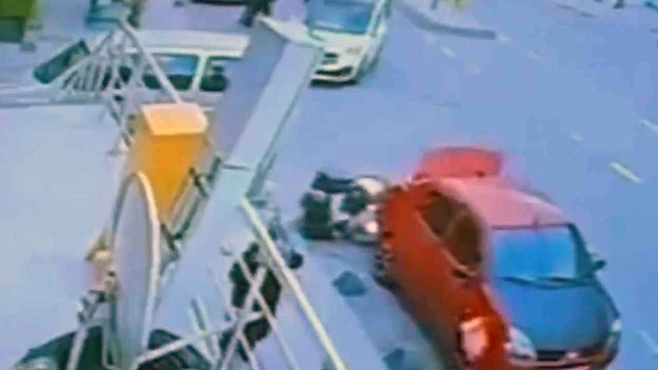 İstanbul Arnavutköy’de seyir halinde olan bir motosikletli kurye, dönüş yapmak isteyen bir otomobile çarpmamak için manevra yaptı. Manevra yapan motosikletli park halindeki araca çarptı. Kaza anı güvenlik kamerası tarafından böyle görüntülendi.