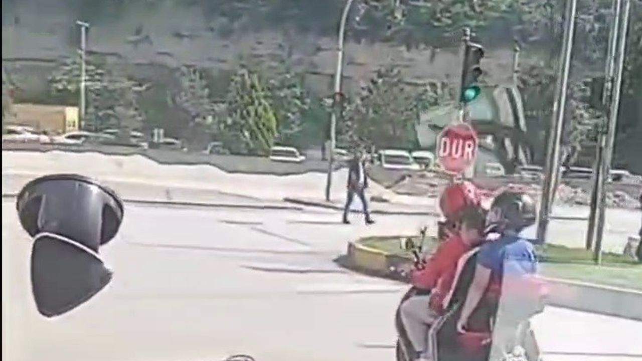 Görüntülerde sadece sürücü ile bir çocukta kask bulunduğu yer alıyor.
