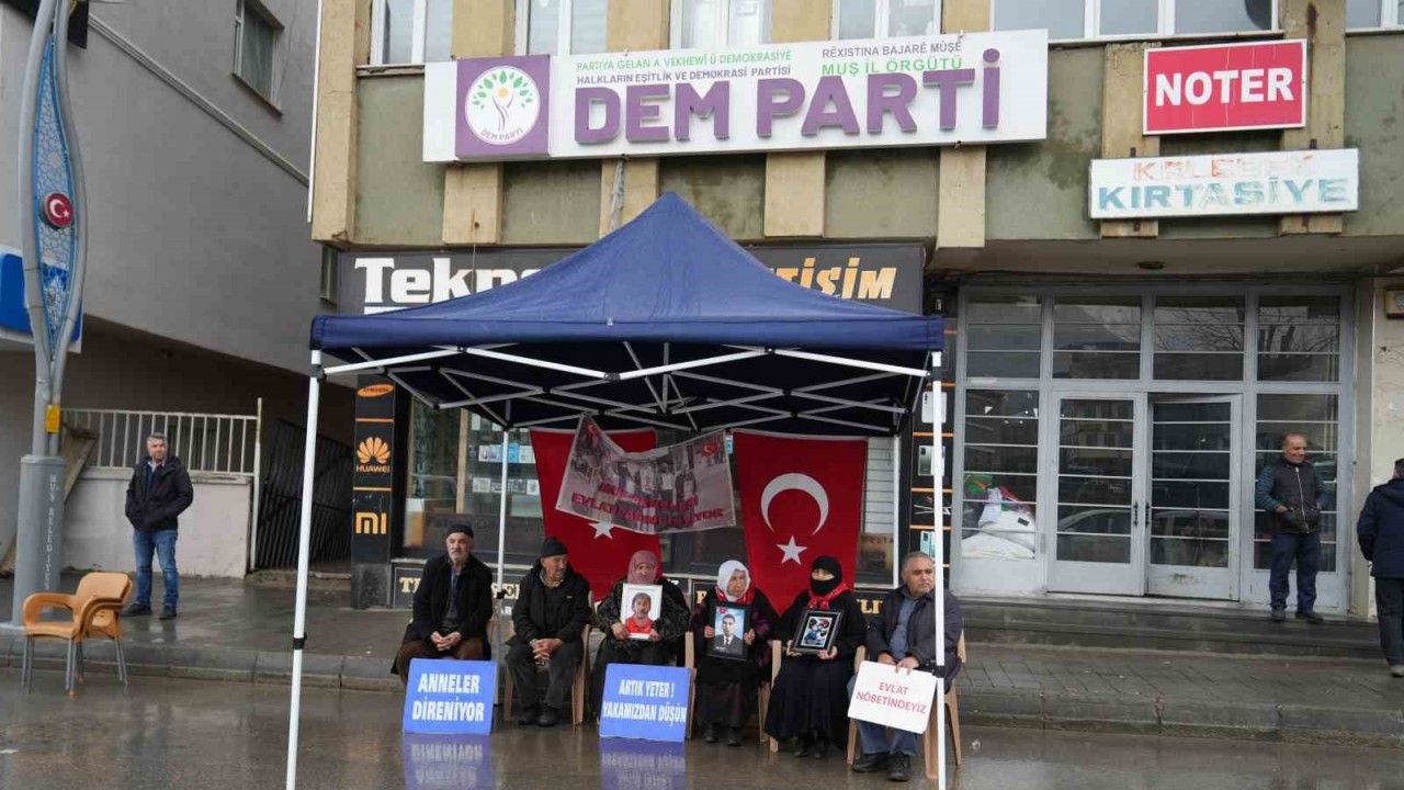 Muş’ta çocukları terör örgütü PKK tarafından kaçırılan aileler, DEM Parti İl Başkanlığı önündeki eylemlerine devam ediyor.
