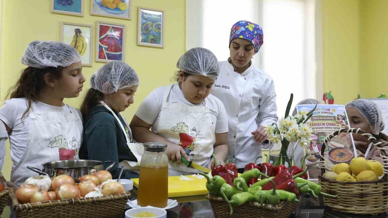 Büyükşehir Belediyesi Kadın ve Aile Hizmetleri Dairesi Başkanlığı bünyesinde faaliyet gösteren Toroslar Çocuk Kampüsünde düzenlenen Mutfak Atölyesi, çocukların mutfak becerilerini geliştirirken aynı zamanda sosyal gelişimlerine de katkı sağlıyor. Atölye kapsamında çocuklar; iş birliği yapma, paylaşma ve üretme gibi becerileri deneyimleyerek öğreniyor. Her hafta farklı tariflerin uygulandığı atölyede çocuklar bu hafta 'ezogelin' çorbası ve tam buğday ekmeği yapımını öğrendi. Mutfakta aktif rol alan çocuklar hem yemek hazırlama sürecine katıldı hem de sağlıklı beslenmenin önemine dair bilgiler edindi.